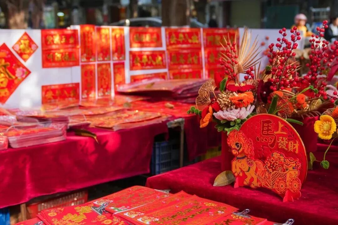 将市场装点得年味完满