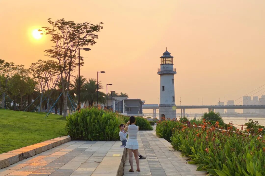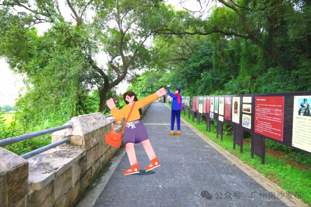 海景与历史展牌交相照映